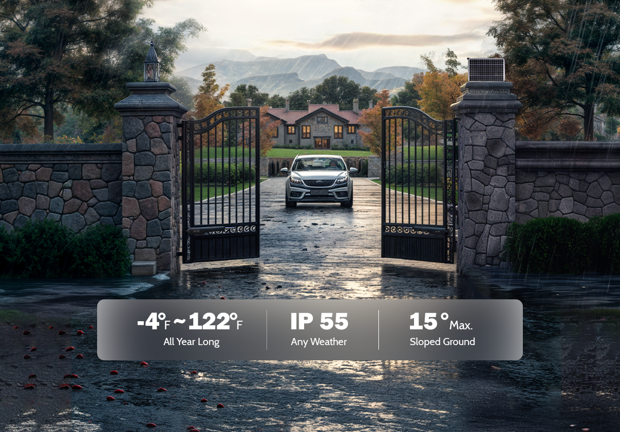 This electric gate opener includes an IP55 casing to safeguard its all-copper motor, delivering dependable service in temperatures from -4 to 122°F, while its sleek and polished design adds both style and durability.
